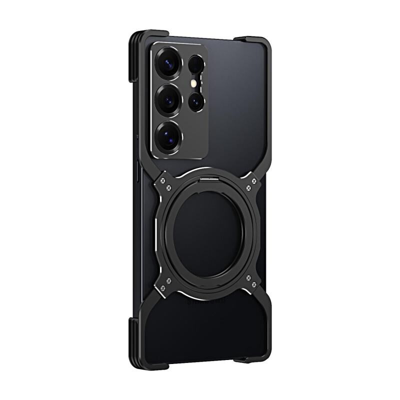 For Samsung Galaxy S25 Ultra 5G Mechanical Arm Borderless MagSafe Holder Metal Phone Case(Black Silver)