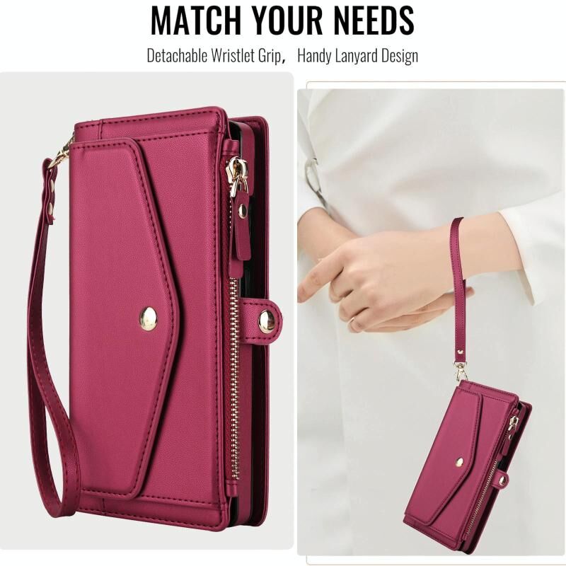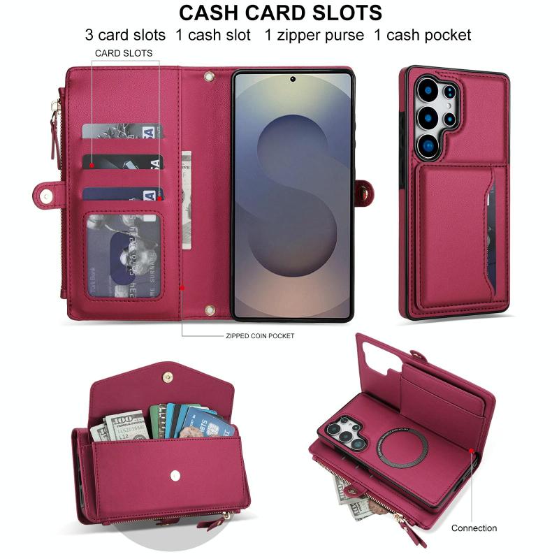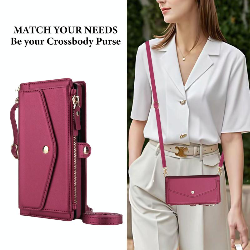 3. Πρακτική λειτουργία πορτοφολιού: Θήκες για κάρτες και διαμερίσματα για μετρητά μπορούν να αποθηκεύσουν τις πιστωτικές σας κάρτες, μετρητά ή μικρά χαρτονομίσματα που χρειάζεστε για καθημερινή χρήση.