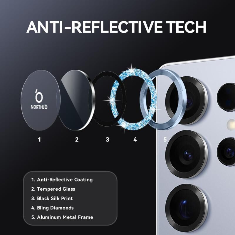 Για Samsung Galaxy S25 Ultra 5G NORTHJO 1 Σετ Προστασίας Φακού Κάμερας Μεταλλικός Δακτύλιος Γκλίτερ (Ροζ) (NORTHJO)