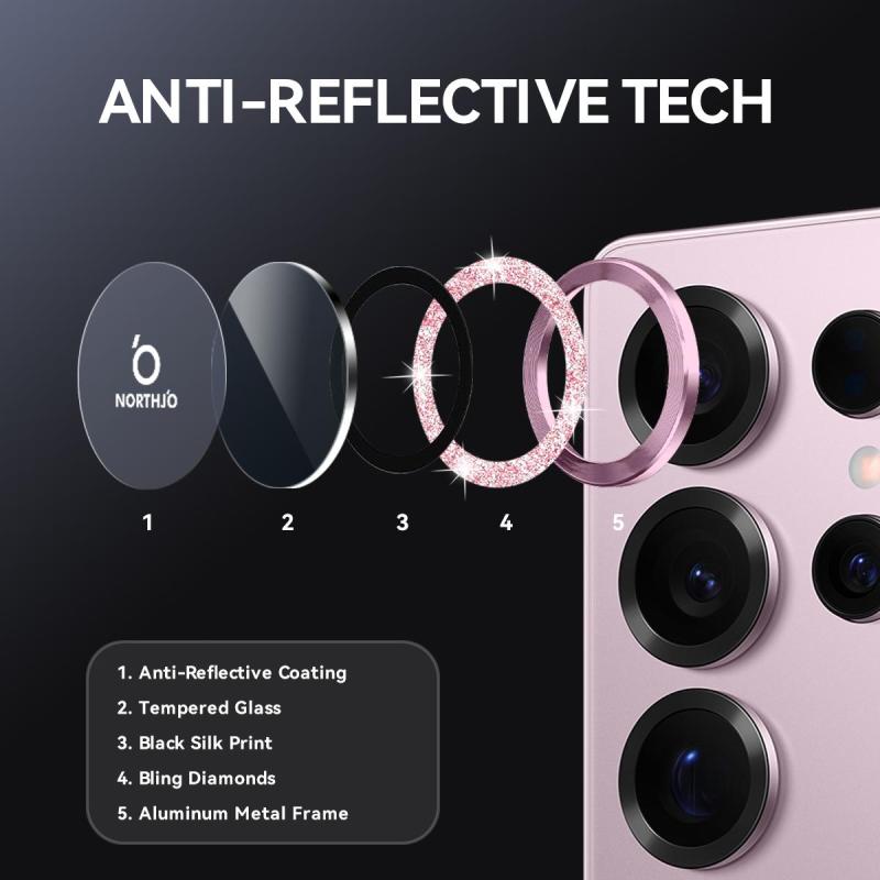 For Samsung Galaxy S25 Ultra 5G NORTHJO 1 Set Camera Lens Protector Glitter Metal Ring Film(Pink) (NORTHJO)