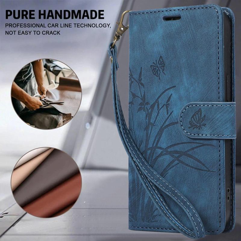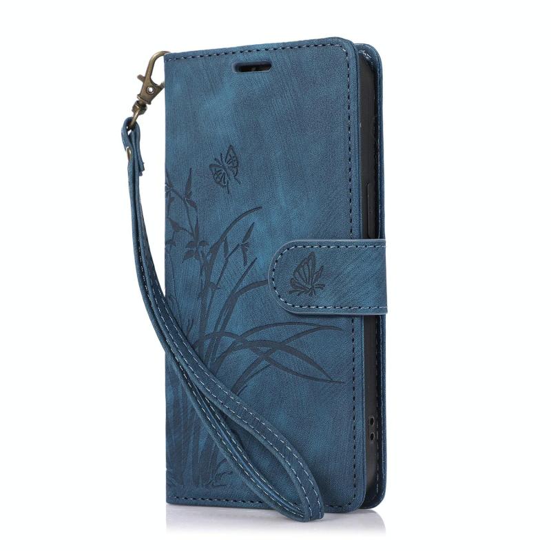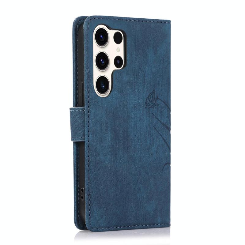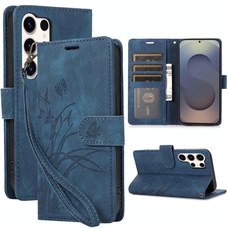 For Samsung Galaxy S25 Ultra 5G Orchid Butterfly Embossed Leather Phone Case(Blue)