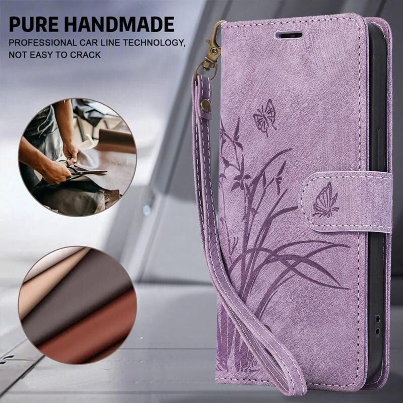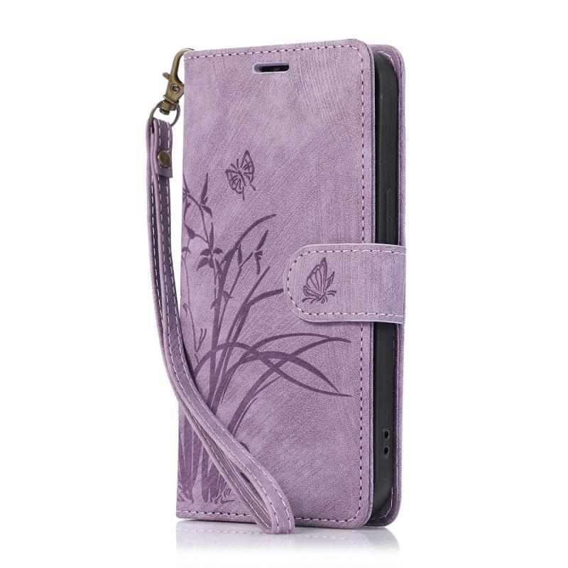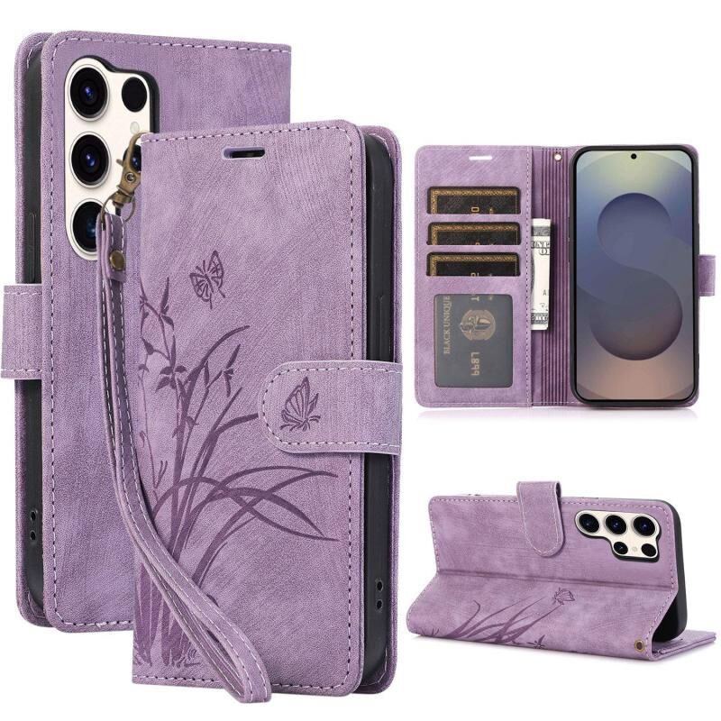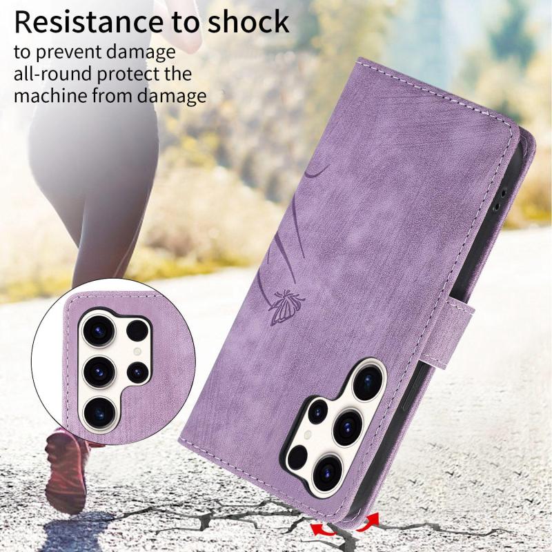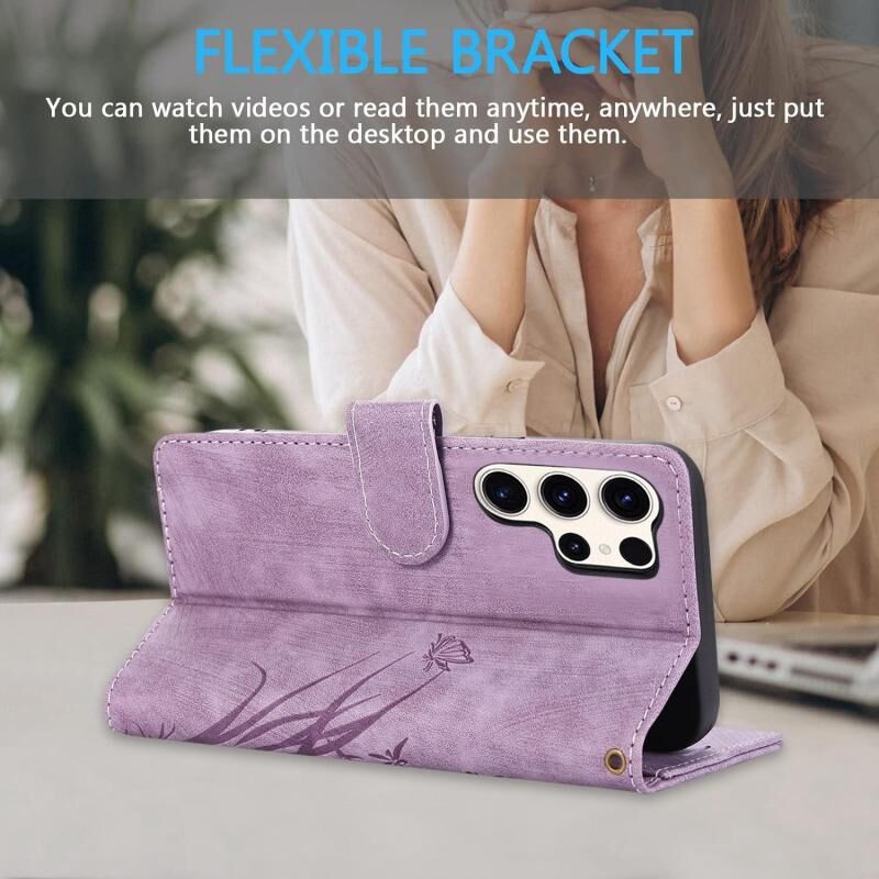 For Samsung Galaxy S25 Ultra 5G Orchid Butterfly Embossed Leather Phone Case(Purple)
