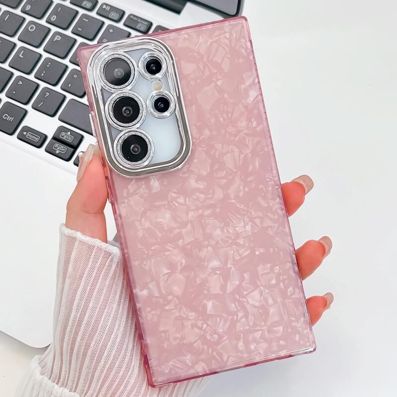 Για Samsung Galaxy S25 Ultra 5G επιμετάλλωση Glitter Υφή TPU τηλέφωνο υπόθεση με φακό ταινία (ροζ Shell μοτίβο)