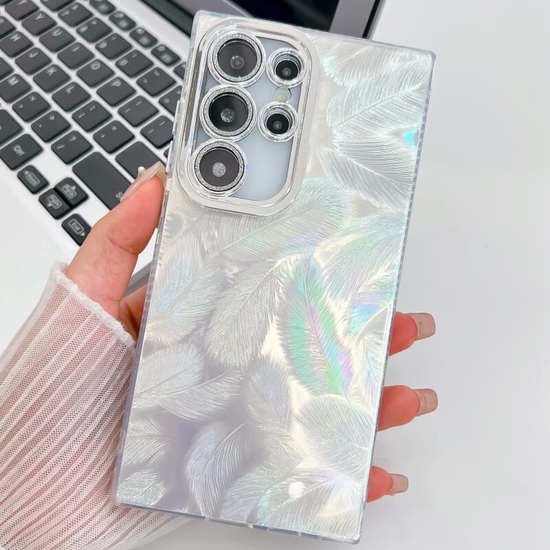 Για Samsung Galaxy S25 Ultra 5G Επιμετάλλωση Glitter Υφή TPU τηλέφωνο υπόθεση με φακό ταινία (Λευκά φτερά)