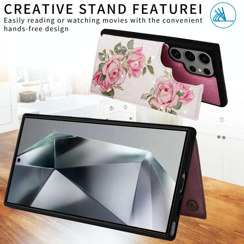 Θήκη τηλεφώνου με εκτύπωση για Samsung Galaxy S25 Ultra 5G, διπλή αγκράφα, αντι-κλοπής RFID (Ροζ)
