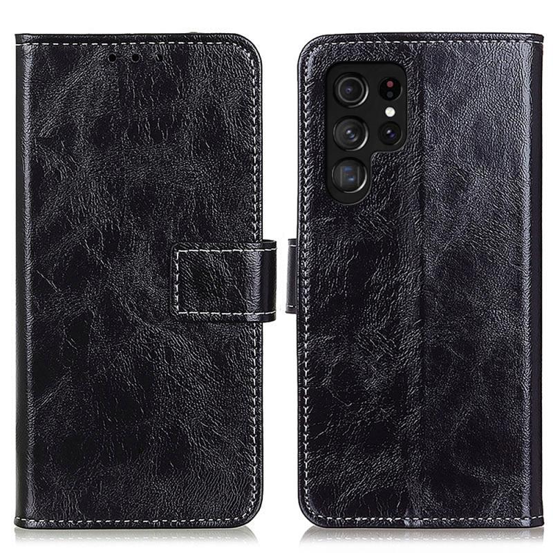 Θήκη τηλεφώνου από δέρμα Retro Crazy Horse για Samsung Galaxy S25 Ultra 5G (Μαύρο)