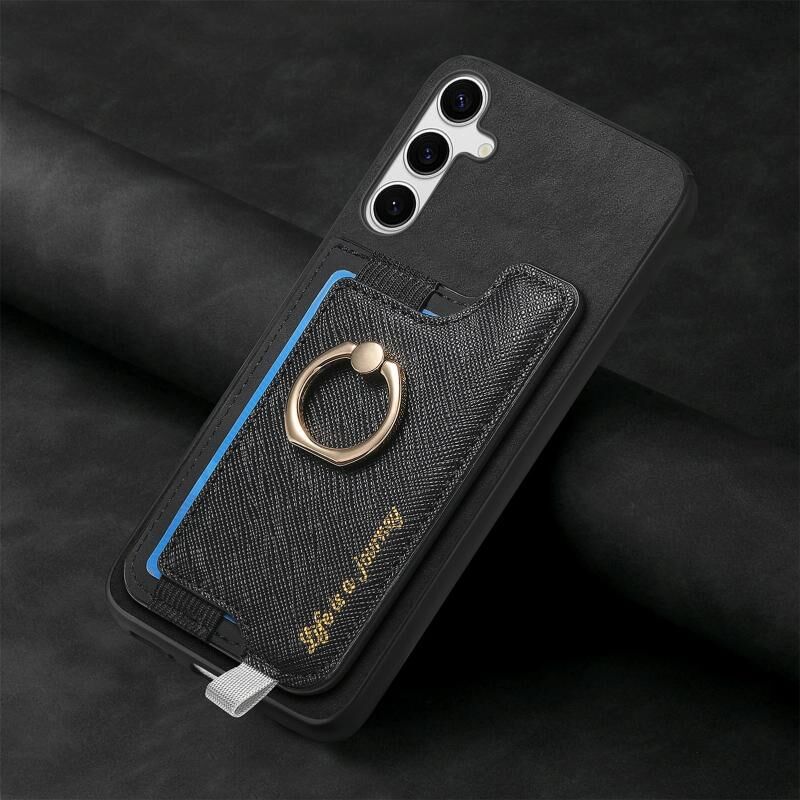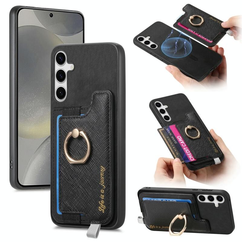 Θήκη τηλεφώνου Samsung Galaxy S25 Ultra 5G Retro Cross Leather Ring Horizontal Insert Card Bag MagSafe (Μαύρο)