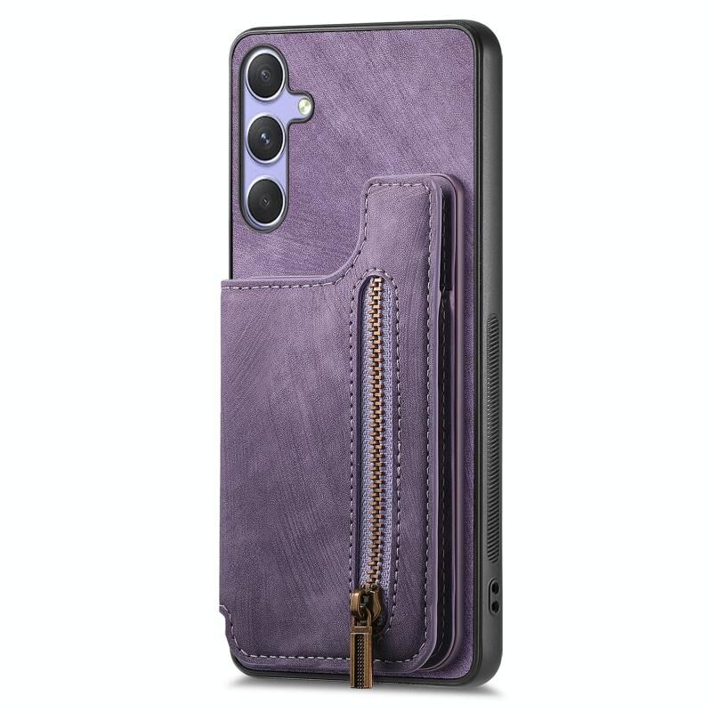 Για Samsung Galaxy S25 Ultra 5G Retro δέρμα φερμουάρ πορτοφόλι πίσω τηλέφωνο υπόθεση (Μωβ)