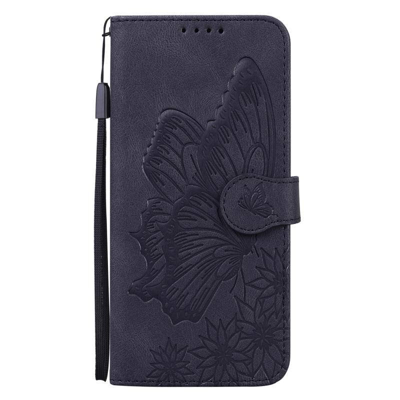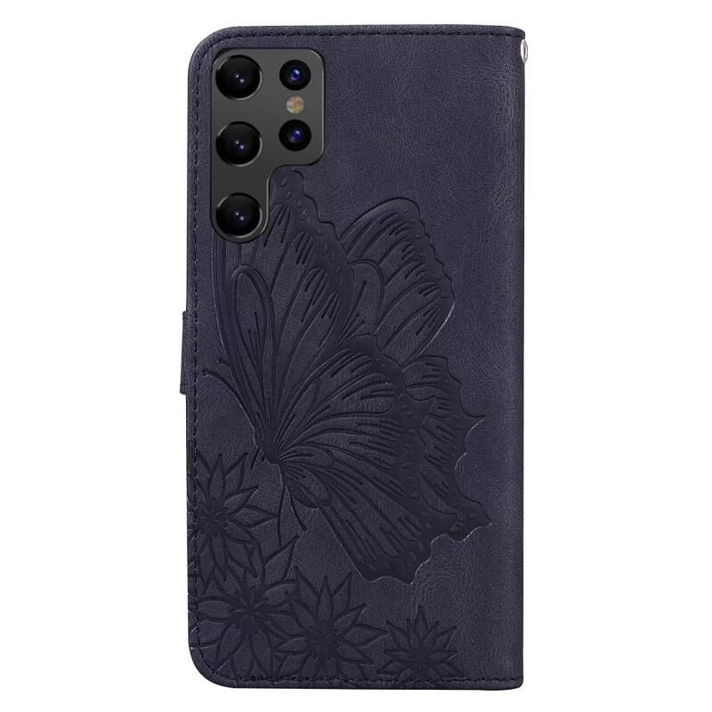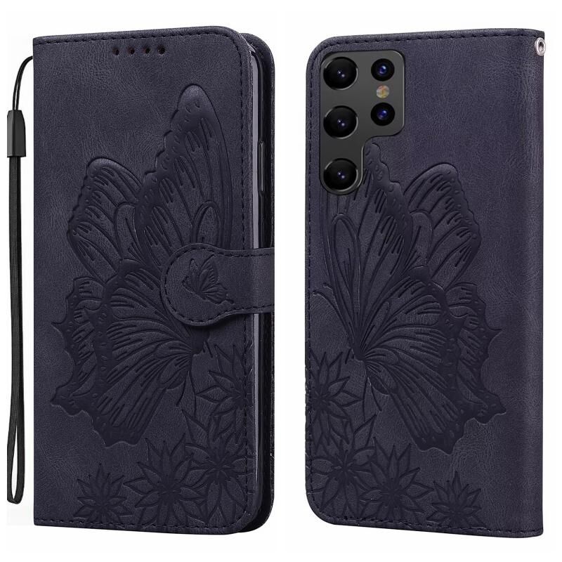 Θήκη τηλεφώνου Samsung Galaxy S25 Ultra 5G, δερμάτινη, οριζόντια αναδιπλούμενη, με ανάγλυφο σχέδιο πεταλούδων και αίσθηση retro (Μαύρο)