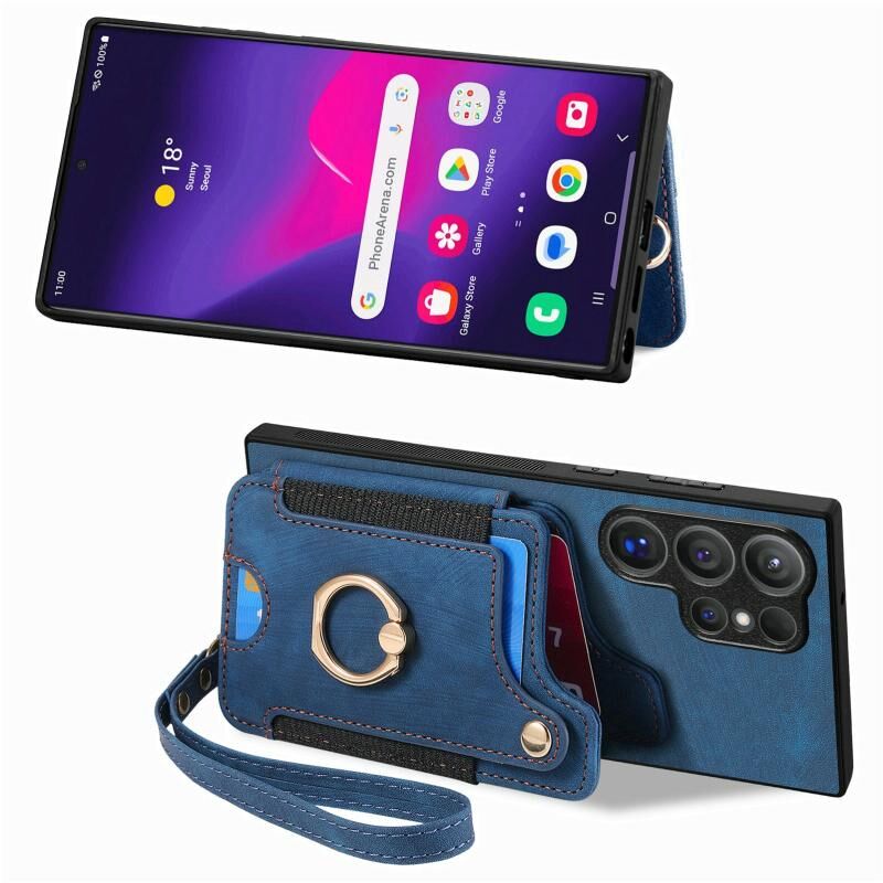 Για Samsung Galaxy S25 Ultra 5G Retro δέρμα-feel δαχτυλίδι δαχτυλίδι πολλαπλών καρτών πορτοφόλι υπόθεση τηλεφώνου (Μπλε)