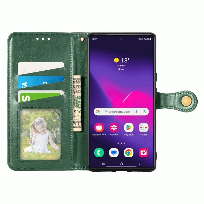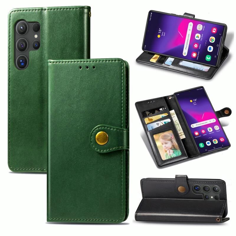 Για Samsung Galaxy S25 Ultra 5G ρετρό στερεό χρώμα αγκράφα δερμάτινη θήκη τηλεφώνου (πράσινο)