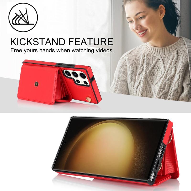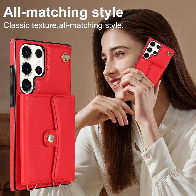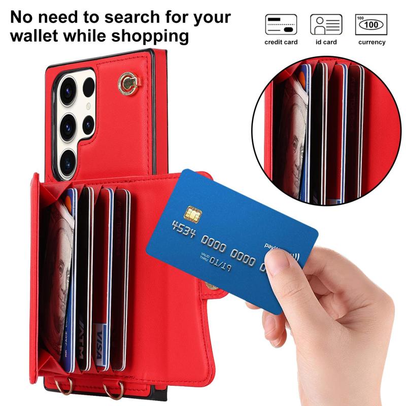 Θήκη κινητού τηλεφώνου για Samsung Galaxy S25 Ultra 5G με υποδοχή κάρτας RFID και μακρύ λουρί (Κόκκινο)
