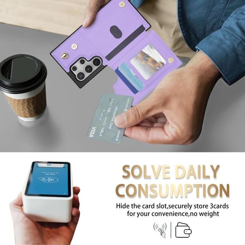 Για Samsung Galaxy S25 Ultra 5G Rhombic Dual Buckle υποδοχές κάρτας υπόθεση τηλεφώνου με κορδόνι (Μωβ)