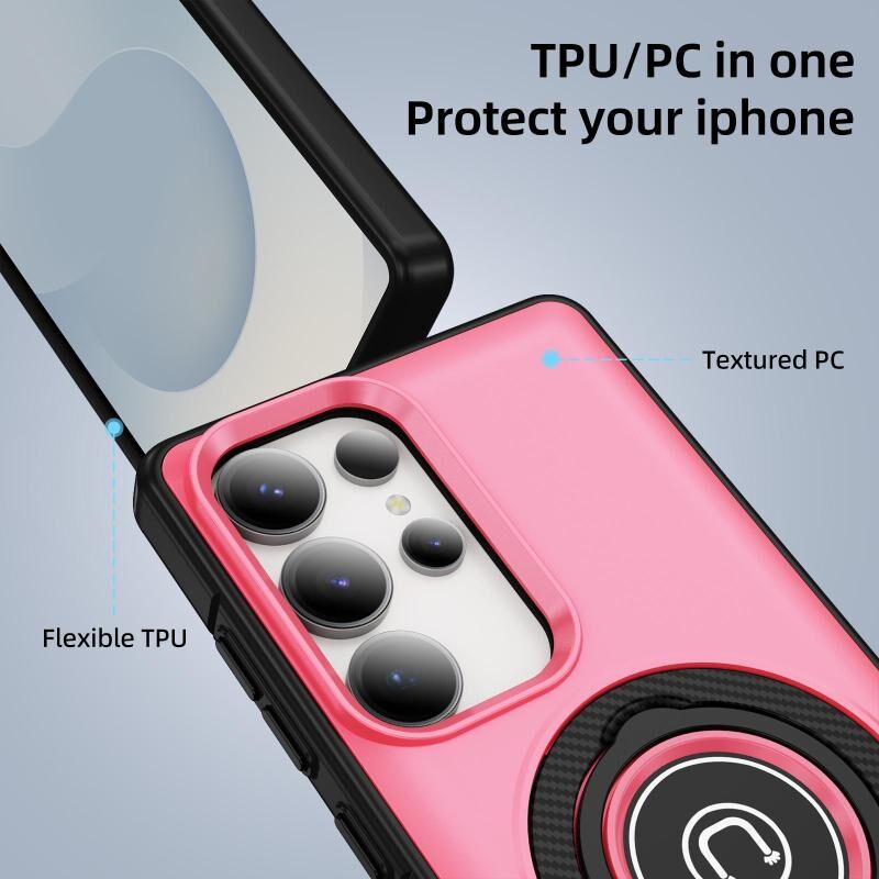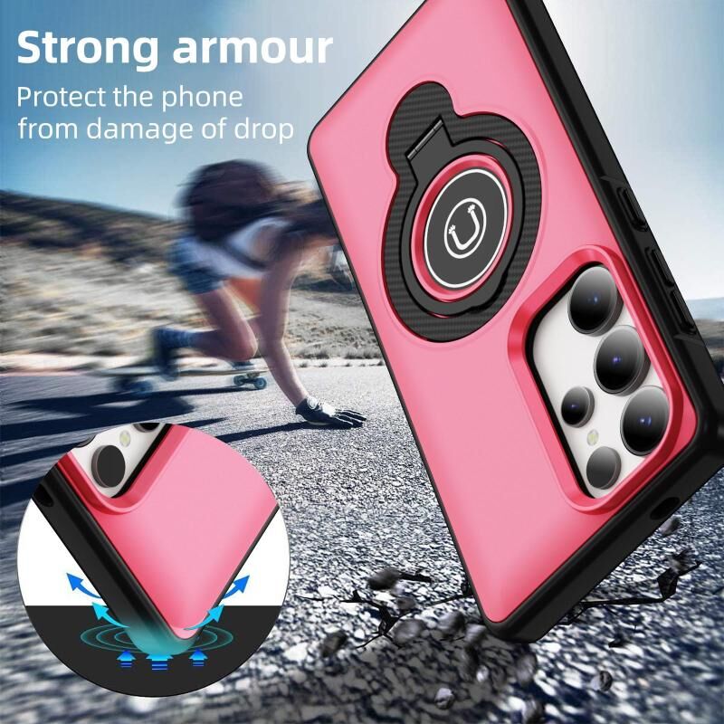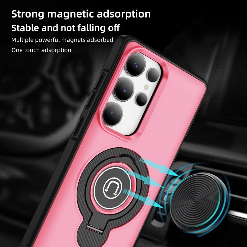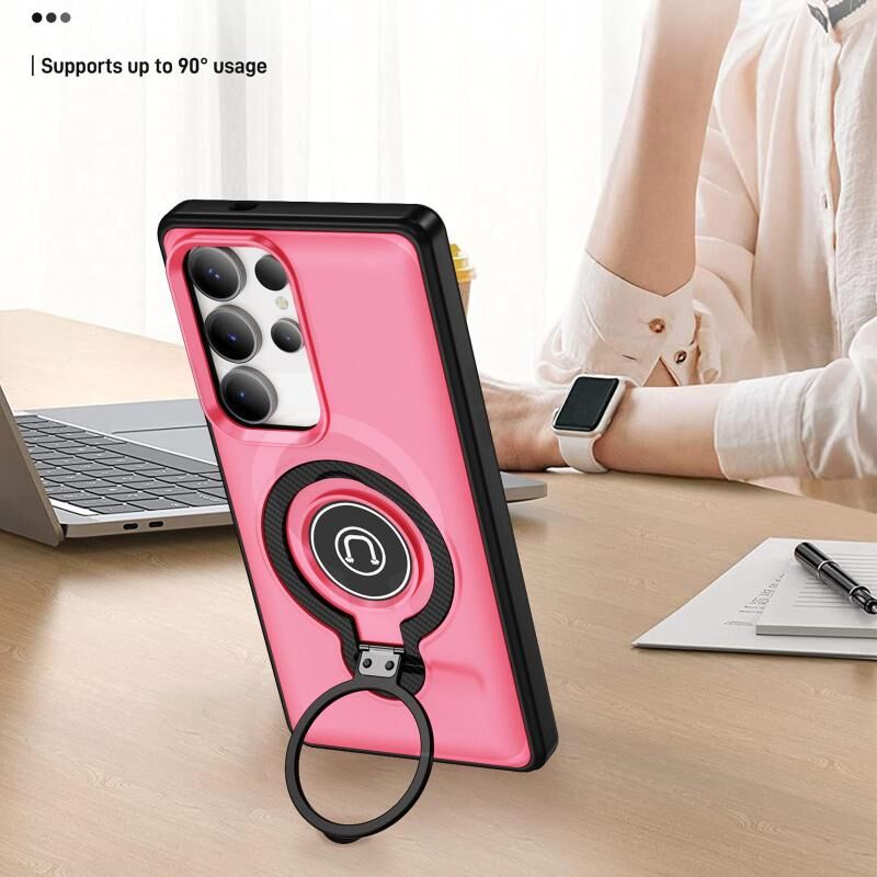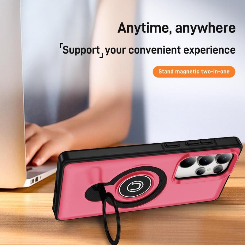 For Samsung Galaxy S25 Ultra 5G Ring Holder Magnetic Phone Case(Bright Pink)