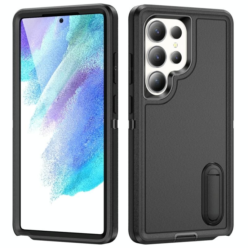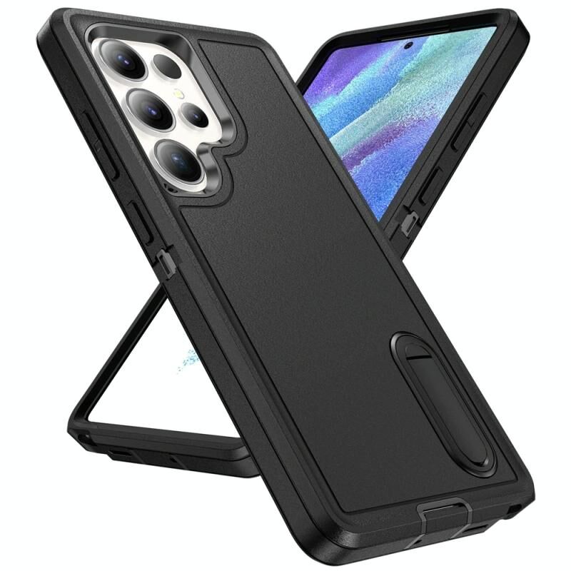 Για Samsung Galaxy S25 Ultra 5G Rugged PC Hybrid σιλικόνης θήκη τηλεφώνου με θήκη (Μαύρο)