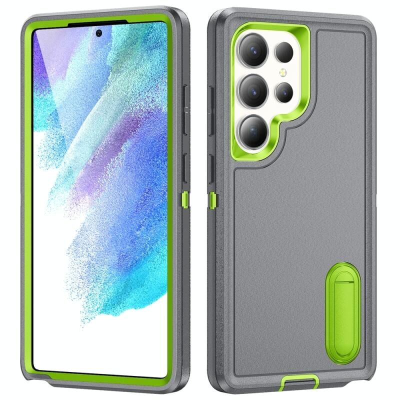 Για Samsung Galaxy S25 Ultra 5G Rugged PC Hybrid σιλικόνης τηλέφωνο υπόθεση με θήκη (γκρι + φρέσκο πράσινο)