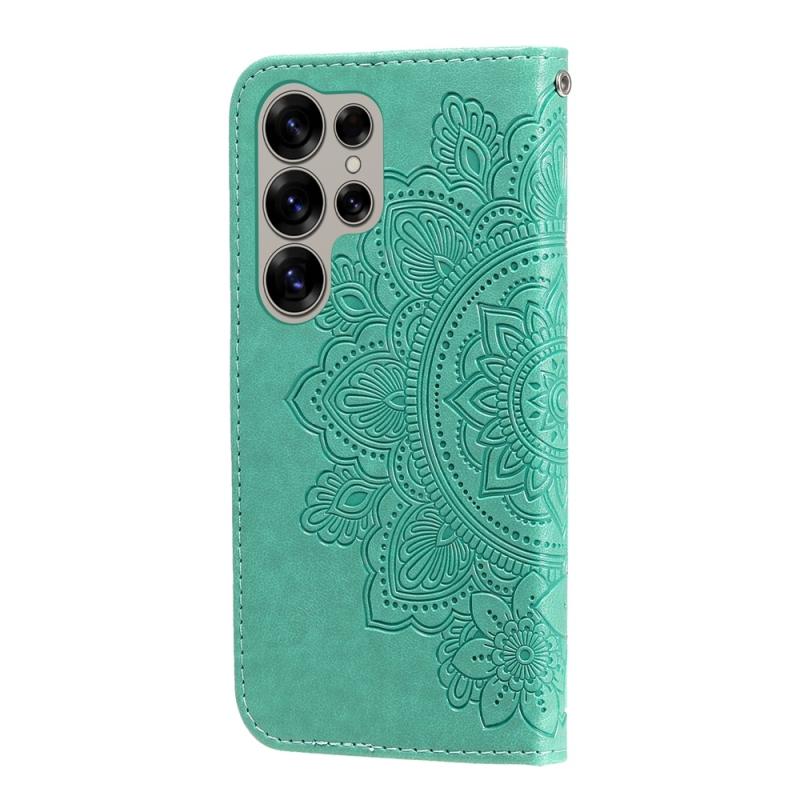 Θήκη τηλεφώνου Samsung Galaxy S25 Ultra 5G από δέρμα με ανάγλυφο επτά πέταλα λουλουδιών (Πράσινο)
