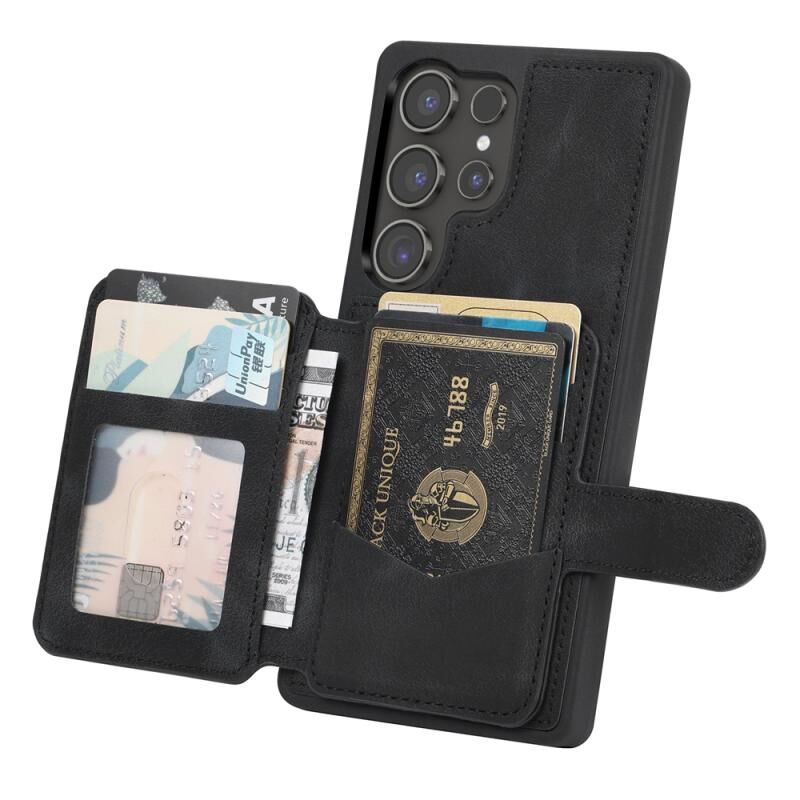Θήκη κινητού τηλεφώνου Samsung Galaxy S25 Ultra 5G με υφή δέρματος, αντι-κλοπής RFID και θήκη καρτών PU (Μαύρο)