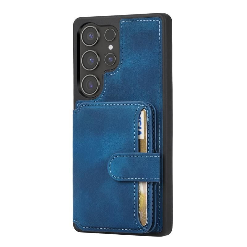 Θήκη κινητού τηλεφώνου Samsung Galaxy S25 Ultra 5G με υφή δέρματος, αντι-κλοπής RFID και θήκη καρτών PU (Μαύρο)