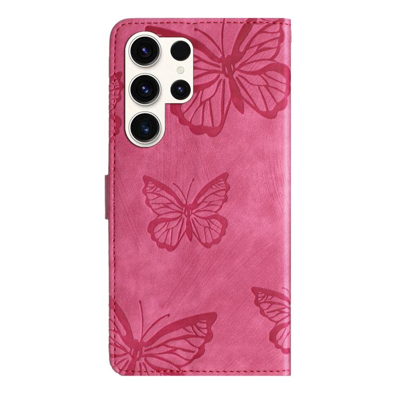 For Samsung Galaxy S25 Ultra 5G Skin-feel Embossed Butterfly Leather Phone Case(Rose Red)