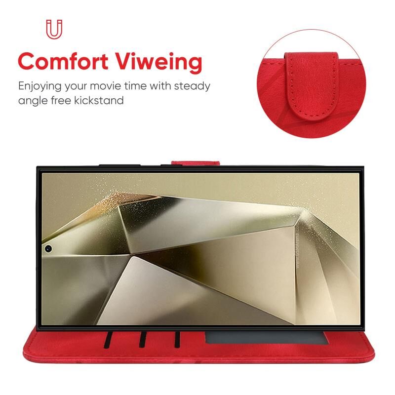 Για το Samsung Galaxy S25 Ultra 5G δέρμα αίσθηση γεωμετρικές γραμμές δερμάτινη θήκη τηλεφώνου (κόκκινο)