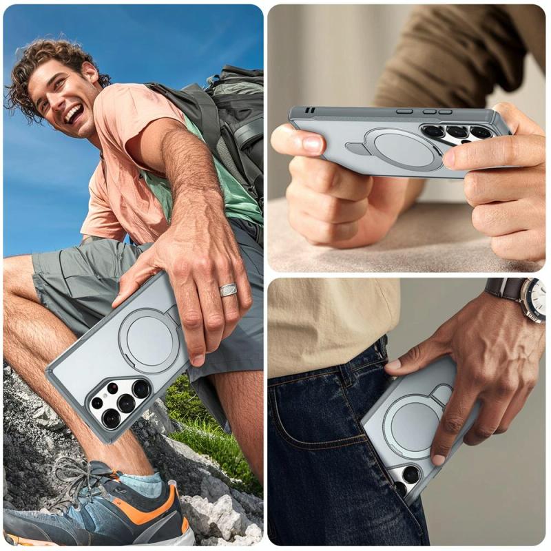 For Samsung Galaxy S25 Ultra 5G Skin Feel Magnetic Holder MagSafe Phone Case(Grey)