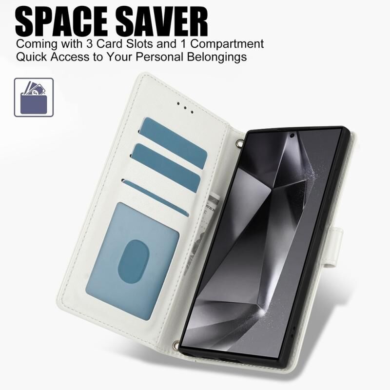 Για Samsung Galaxy S25 Ultra 5G δέρμα αίσθηση καθαρό χρώμα κάρτα υποδοχές δερμάτινη θήκη τηλεφώνου με διπλό κορδόνι (λευκό)