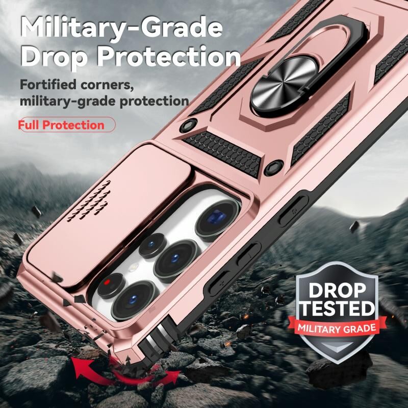 Για Samsung Galaxy S25 Ultra 5G Συρόμενη θήκη τηλεφώνου Camshield Holder (ροζ χρυσό)