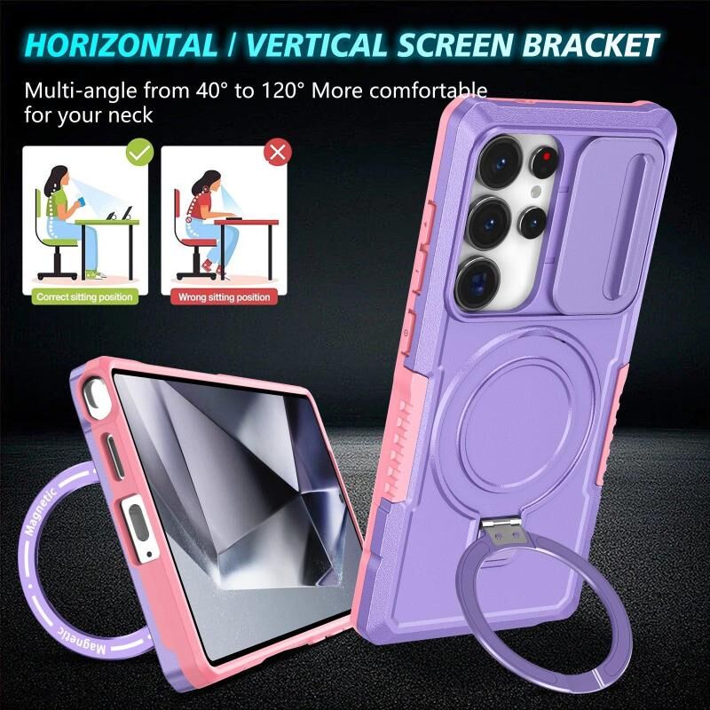 Θήκη κινητού τηλεφώνου Samsung Galaxy S25 Ultra 5G με συρόμενο προστατευτικό κάμερας, MagSafe και υβριδικό υλικό TPU/PC (Ροζ-Μωβ)