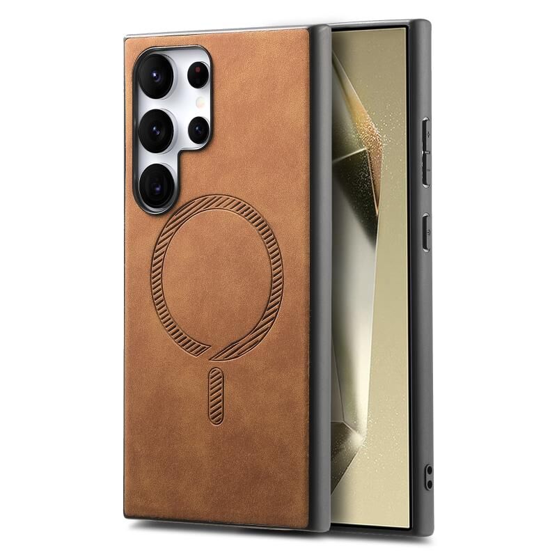 Θήκη κινητού τηλεφώνου Samsung Galaxy S25 Ultra 5G, μονόχρωμη, ρετρό, με MagSafe, από PU (πολυουρεθάνη) (Καφέ)