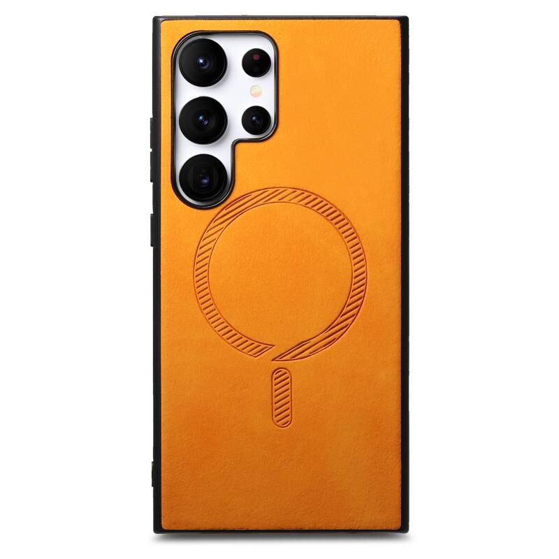 Θήκη κινητού τηλεφώνου Samsung Galaxy S25 Ultra 5G, μονόχρωμη, ρετρό, με MagSafe, από PU (πολυουρεθάνη) (Ροζ)