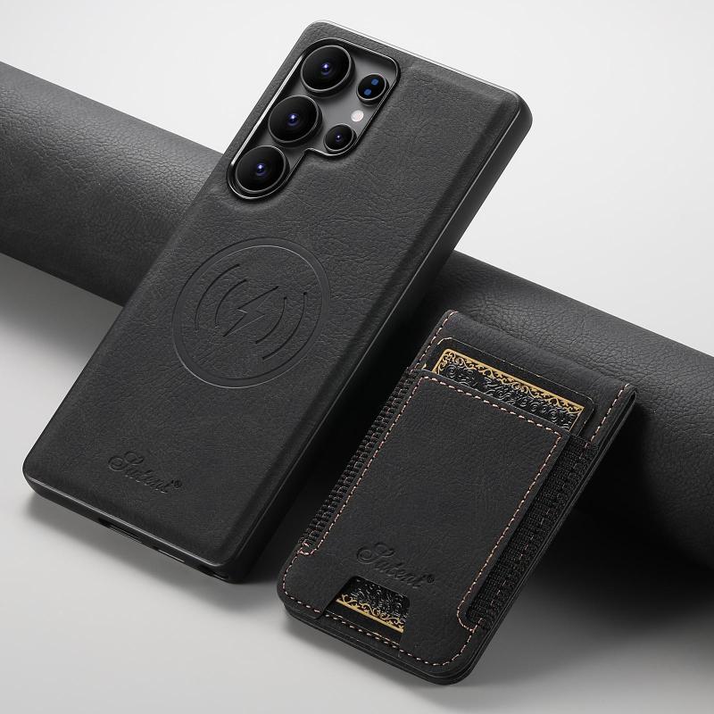 Για Samsung Galaxy S25 Ultra 5G Suteni H17 Δερμάτινη Θήκη Wallet MagSafe (Καφέ)