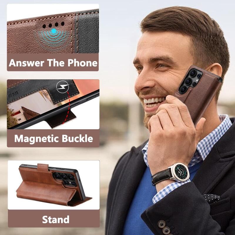 Θήκη τηλεφώνου 2-σε-1, αποσπώμενο πορτοφόλι, πολυλειτουργική, με MagSafe για Samsung Galaxy S25 Ultra 5G Suteni Q07 (Μαύρο) (Καφέ)
