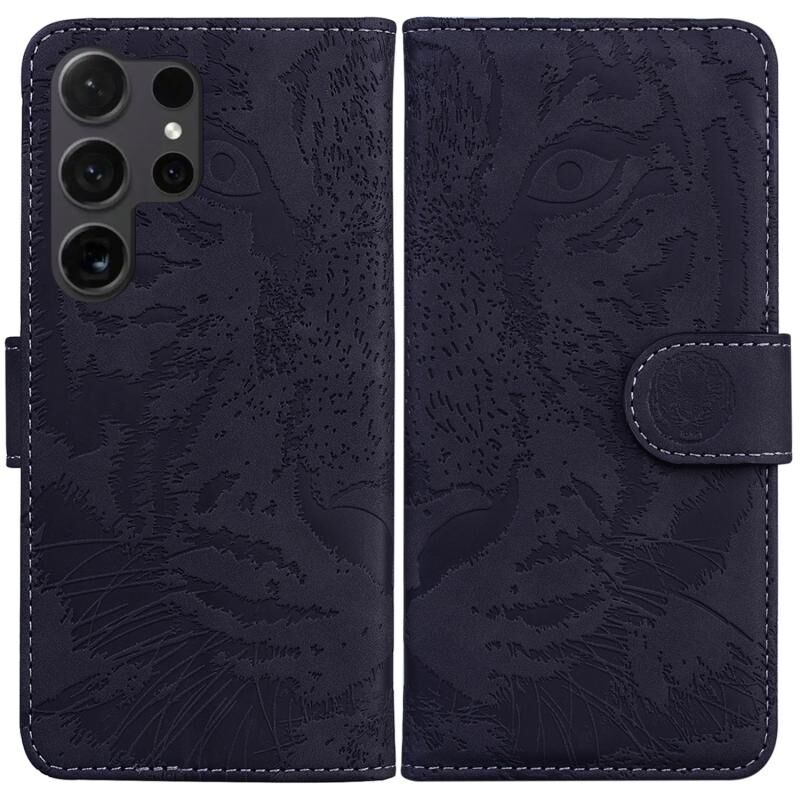 Θήκη τηλεφώνου Samsung Galaxy S25 Ultra 5G με ανάγλυφο σχέδιο τίγρης, δερμάτινη, τύπου flip (Μαύρο)