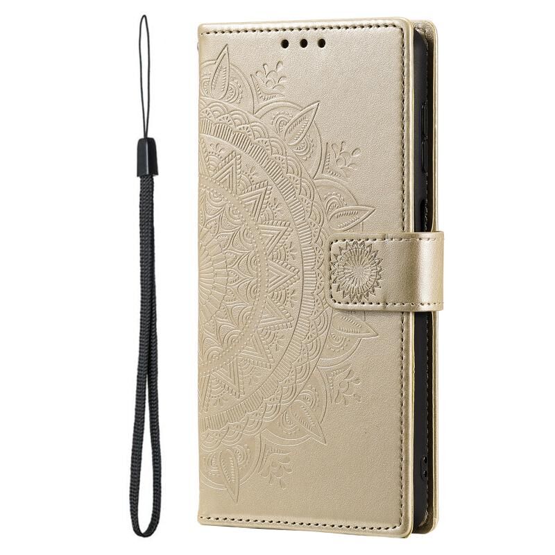 Για Samsung Galaxy S25 Ultra 5G Totem Flower ανάγλυφη δερμάτινη θήκη τηλεφώνου (χρυσό)