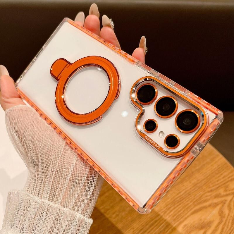 Θήκη κινητού τηλεφώνου με διαφανή βάση MagSafe για Samsung Galaxy S25 Ultra 5G με προστατευτική μεμβράνη φακού (Πορτοκαλί)