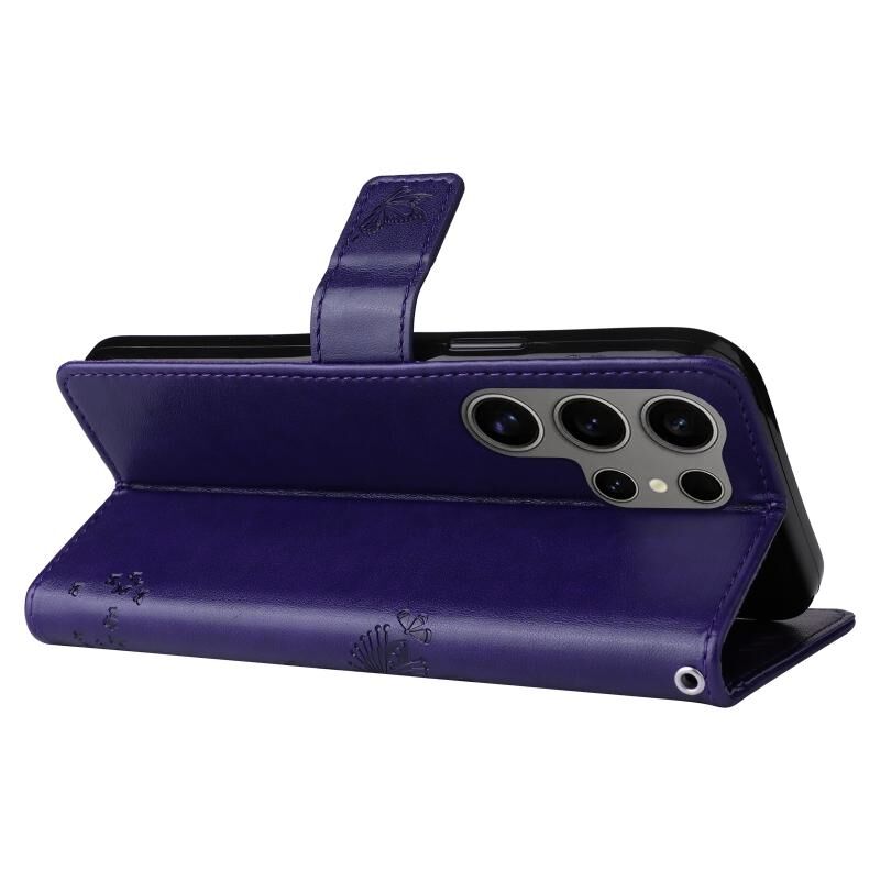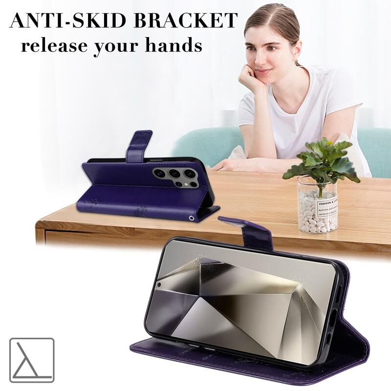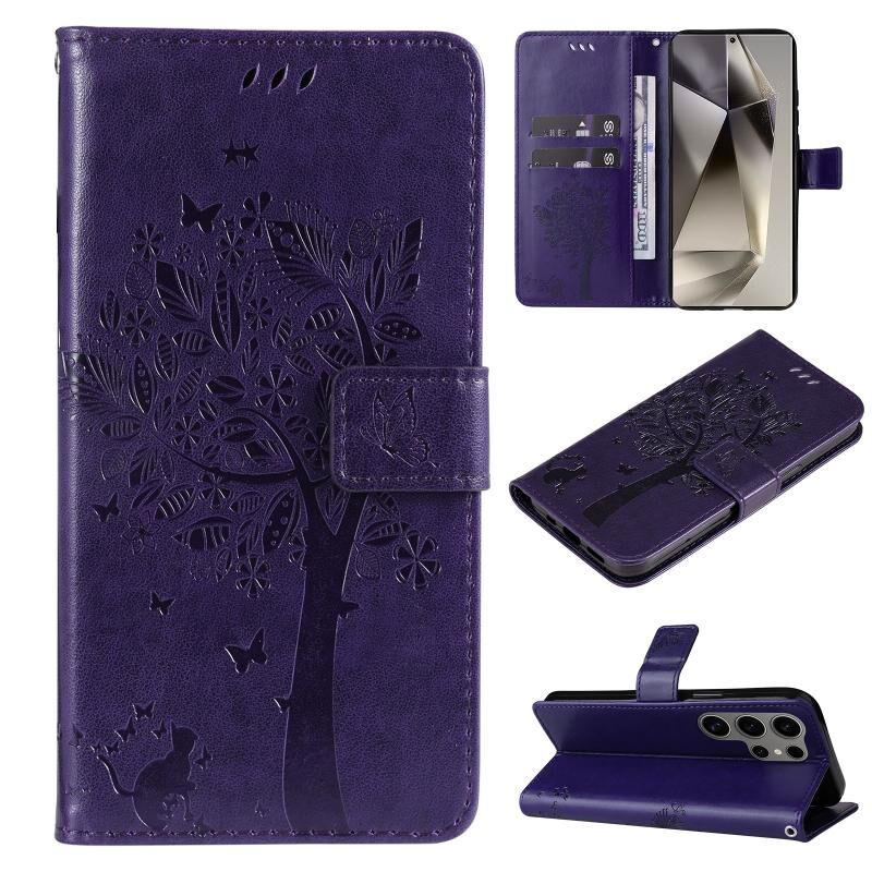 Θήκη τηλεφώνου Samsung Galaxy S25 Ultra 5G από δέρμα με σχέδιο αναγλύφου δέντρου & γάτας (Ροζ)