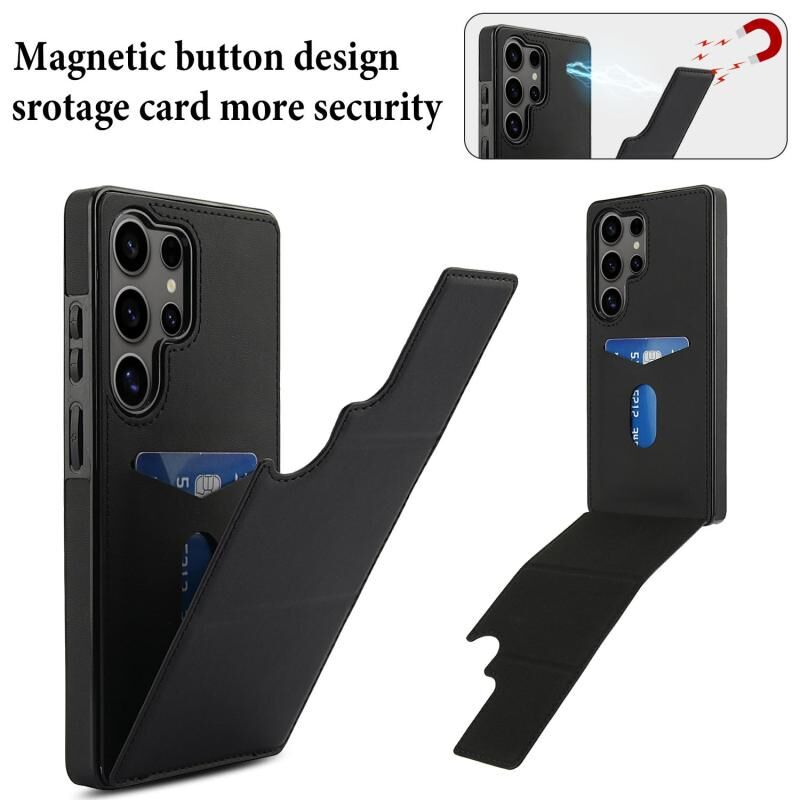 Θήκη τηλεφώνου Samsung Galaxy S25 Ultra 5G τριπλού διπλώματος από δέρμα με υποδοχή κάρτας (Μαύρο)