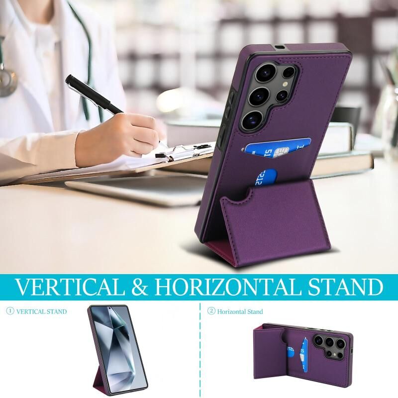 Θήκη τηλεφώνου Samsung Galaxy S25 Ultra 5G τριπλού διπλώματος από δέρμα με υποδοχή κάρτας (Μαύρο)