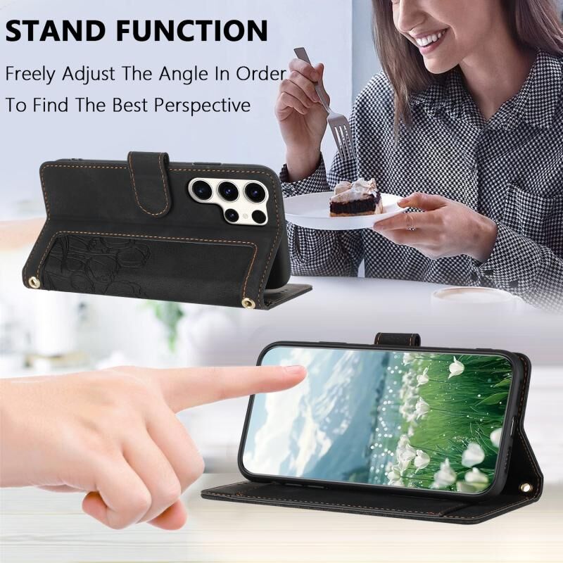 Θήκη τηλεφώνου Samsung Galaxy S25 Ultra 5G από δέρμα με ανάγλυφα τουλίπες και κορδόνι (Πράσινο)