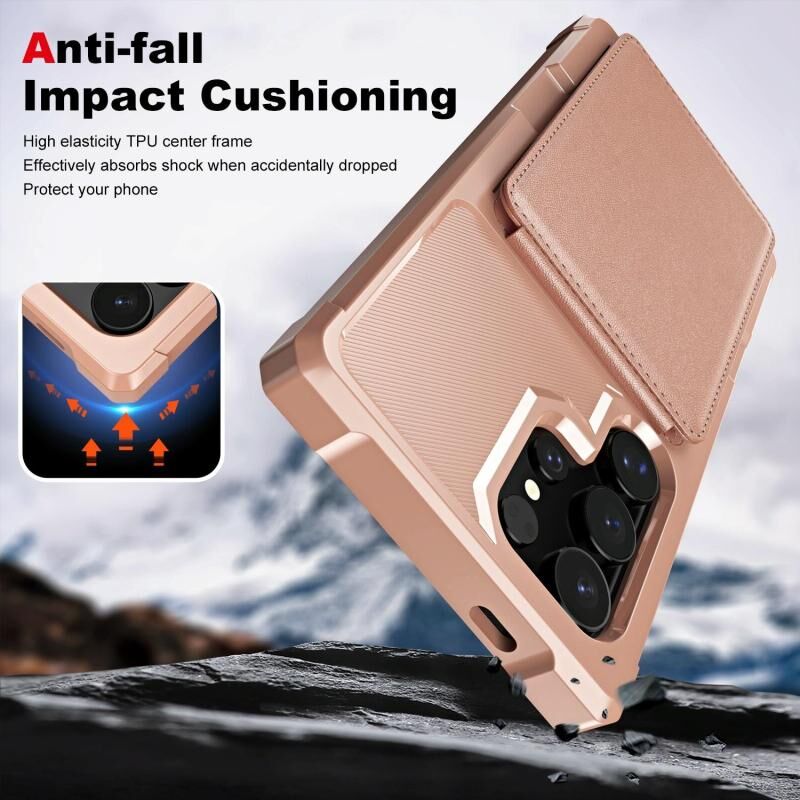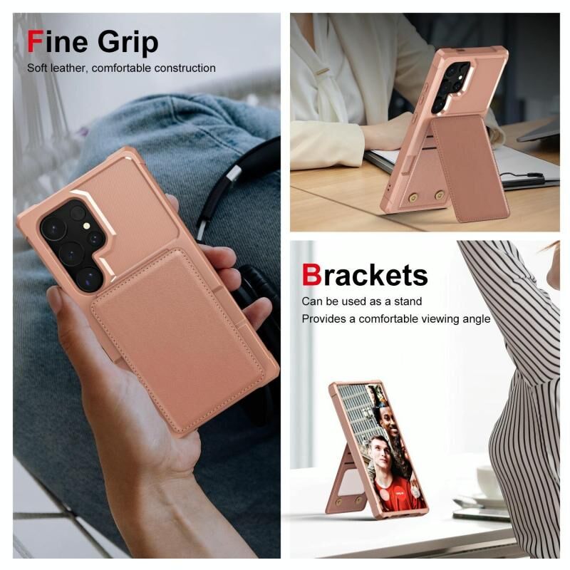 Θήκη τηλεφώνου Samsung Galaxy S25 Ultra 5G, κάθετη θήκη κάρτας τύπου πορτοφολιού από δέρμα (Ροζ χρυσός)