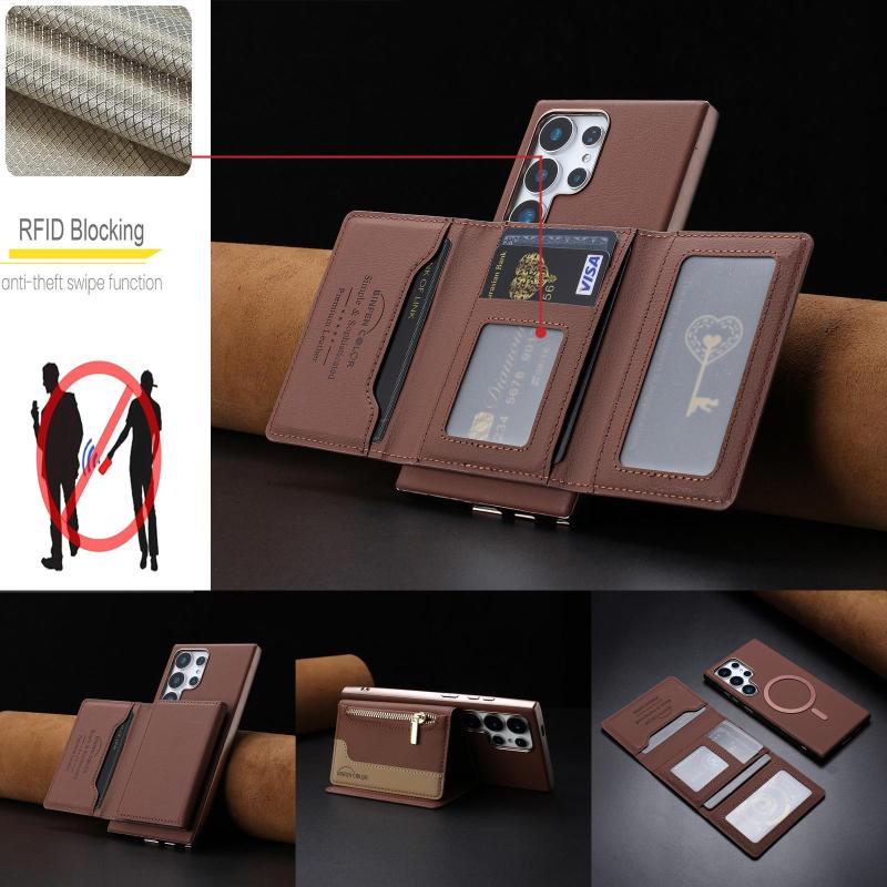 2. Magnetic Tri-Fold Wallet Design: Features a horizontal fold with a strong magnetic closure for easy access and secure storage.