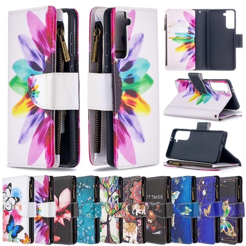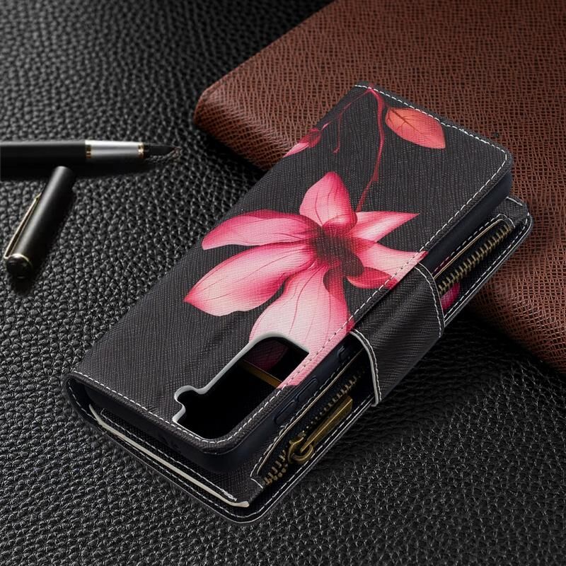 Θήκη Samsung Galaxy S30 Δερμάτινη Οριζόντια με Φερμουάρ, Σχέδιο με Χρώματα και Θήκη, Υποδοχές για Κάρτες & Πορτοφόλι (Lotus)