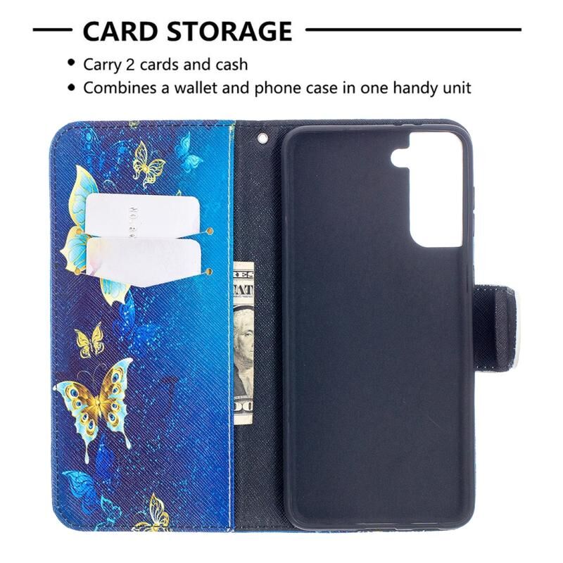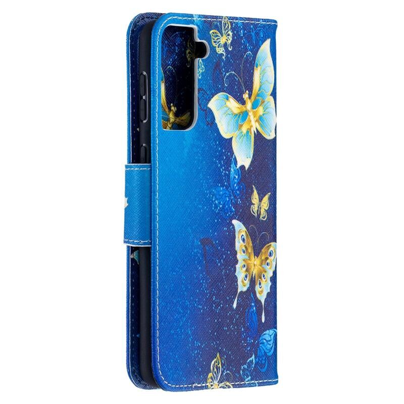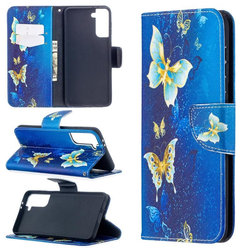Θήκη δέρματος οριζόντιας αναδίπλωσης με σχέδιο πολύχρωμης ζωγραφικής για Samsung Galaxy S30 Plus με βάση & υποδοχές καρτών & πορτοφόλι (Μπλε Πεταλούδα)
