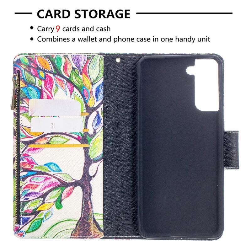 Θήκη δέρματος οριζόντιας αναδίπλωσης με φερμουάρ και σχέδιο πολύχρωμης ζωγραφικής για Samsung Galaxy S30 Plus με βάση για κάρτες και πορτοφόλι (Δέντρο)