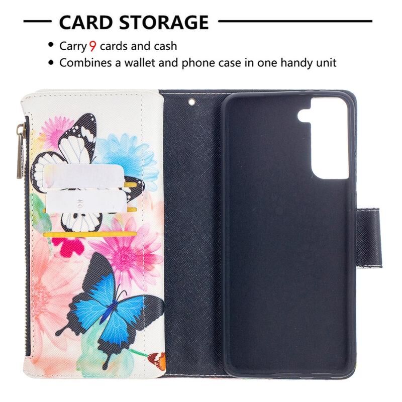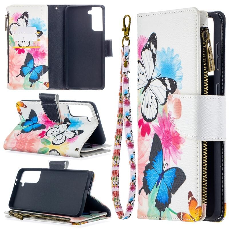 Θήκη δέρματος οριζόντιας αναδίπλωσης με φερμουάρ για Samsung Galaxy S30 Plus με έγχρωμο σχέδιο (Δύο Πεταλούδες), με βάση & υποδοχές καρτών & πορτοφόλι.