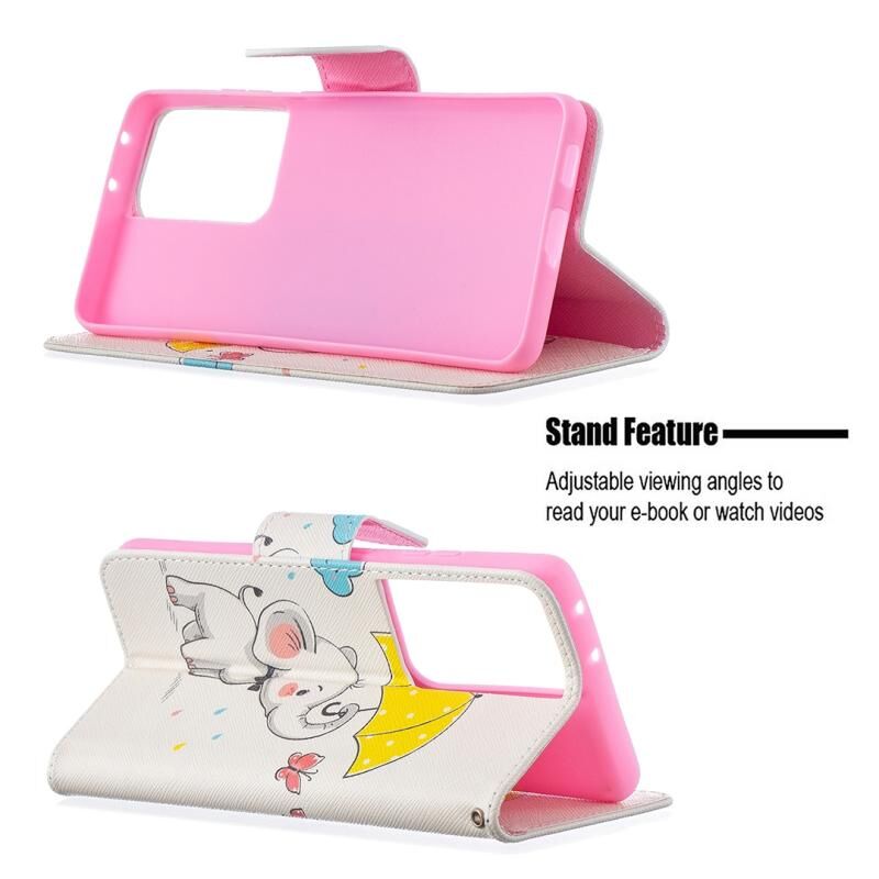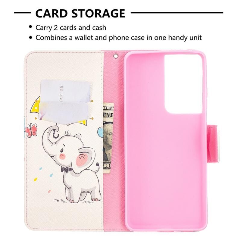 Θήκη δέρματος οριζόντιας αναδίπλωσης με σχέδιο πολύχρωμης ζωγραφικής για Samsung Galaxy S30 Ultra με βάση στήριξης & υποδοχές καρτών & πορτοφόλι (Ομπρέλα Ελέφαντας)