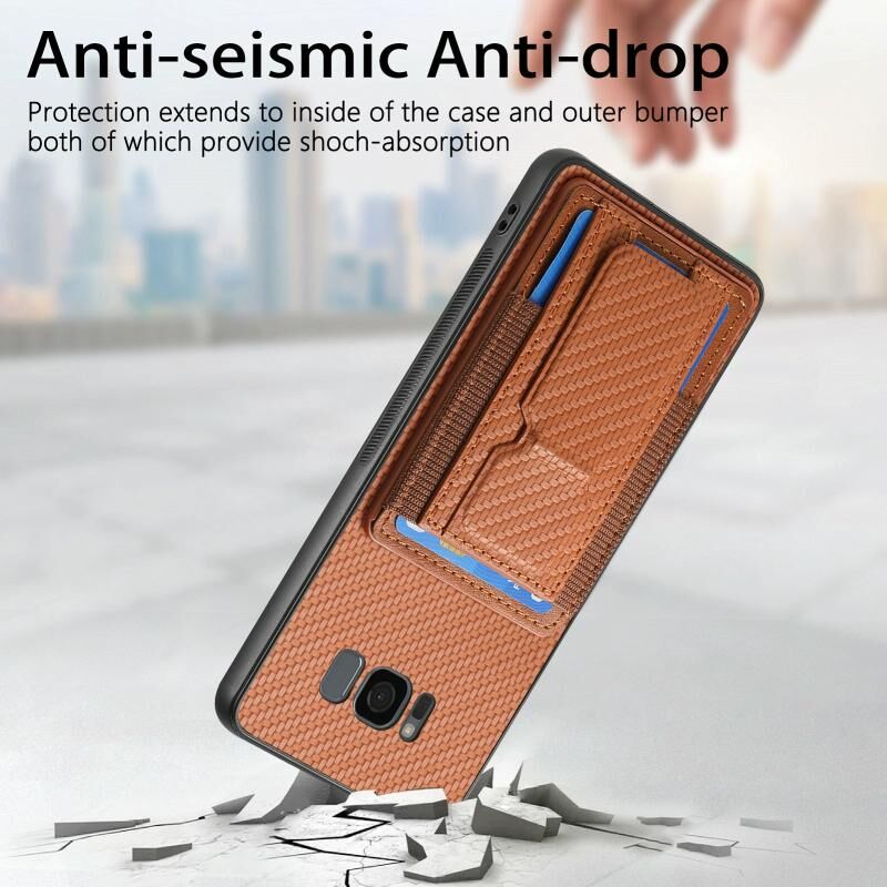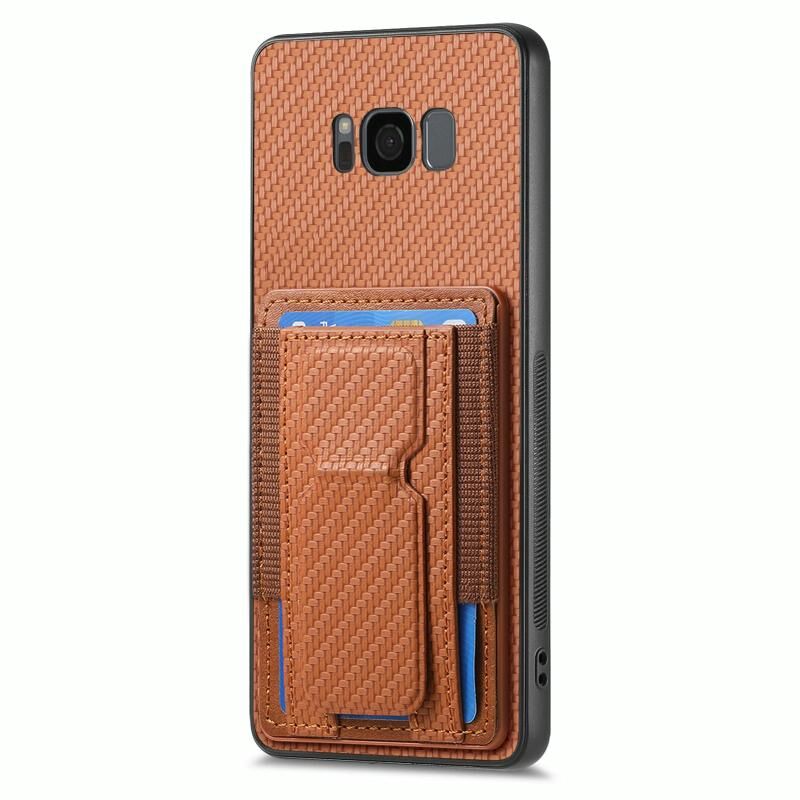For Samsung Galaxy S8 Carbon Fiber Fold Stand Elastic Card Bag Phone Case(Brown)
