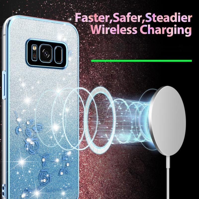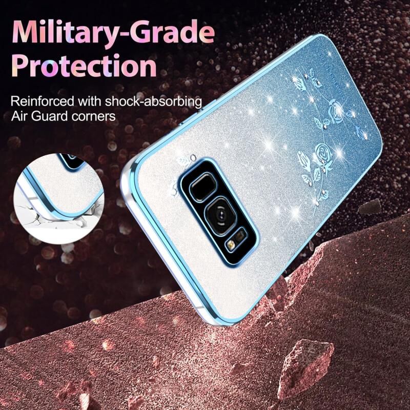For Samsung Galaxy S8 Gradient Glitter Flower All-inclusive Phone Case(Blue)