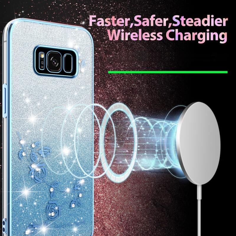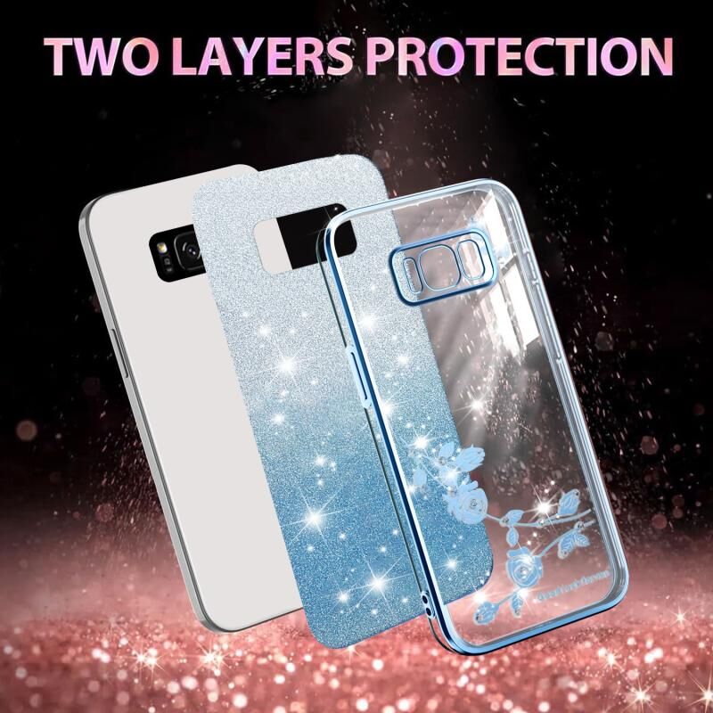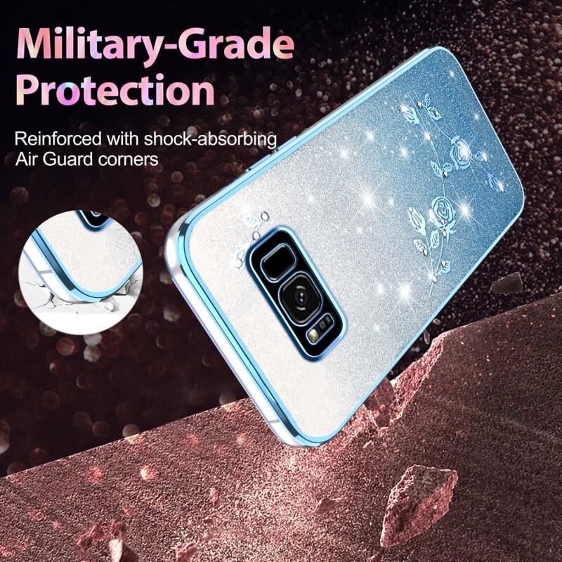 For Samsung Galaxy S8+ Gradient Glitter Flower All-inclusive Phone Case(Blue)